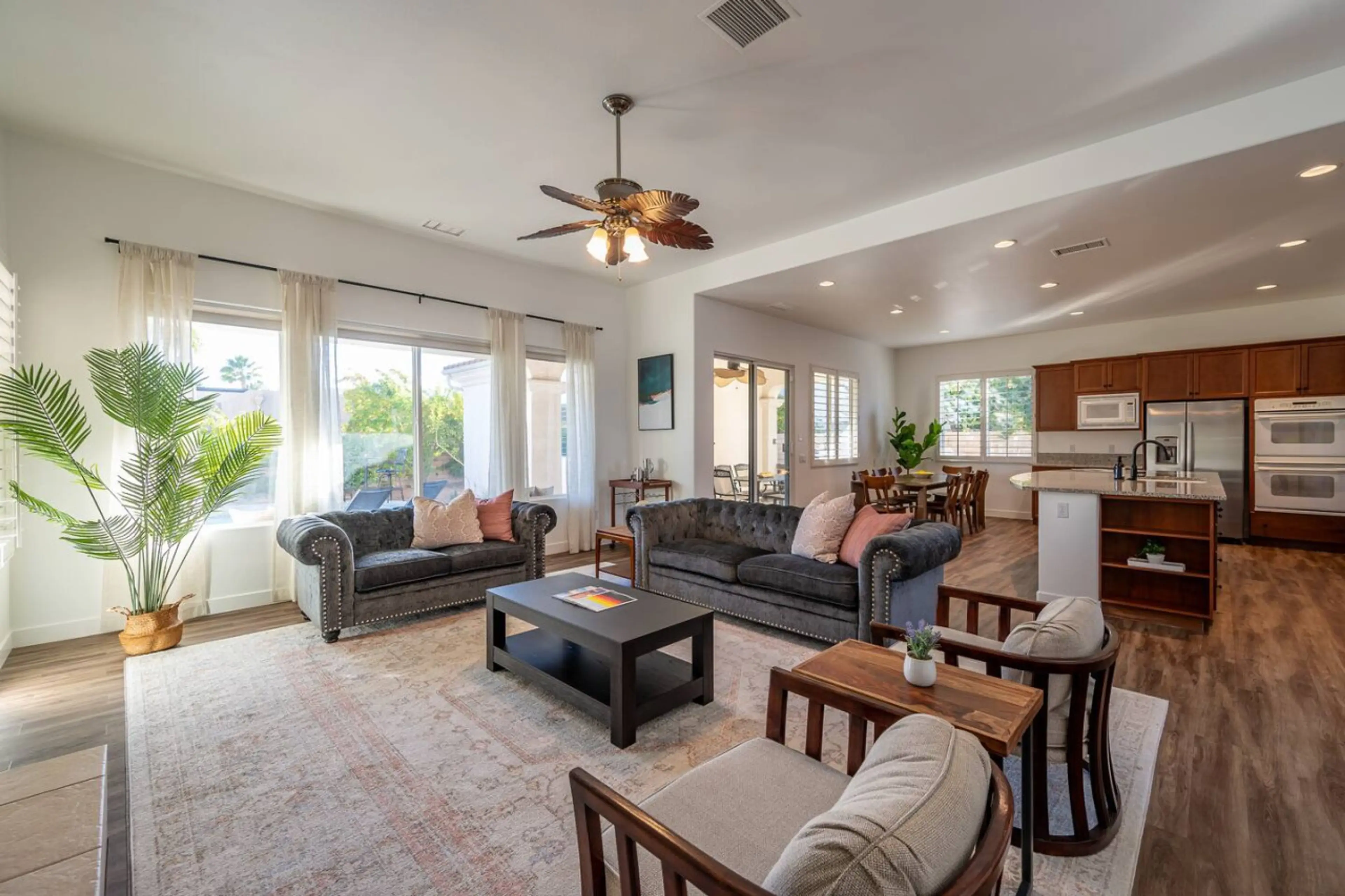 Welcome to Paradise Palms! Discover Palm Springs luxury at our spacious retreat, where an open kitchen and chic living area open to a private pool and spa. Just moments from downtown, this 4-bedroom oasis offers a stylish retreat with easy access to the vibrant city scene. Your perfect desert escape...