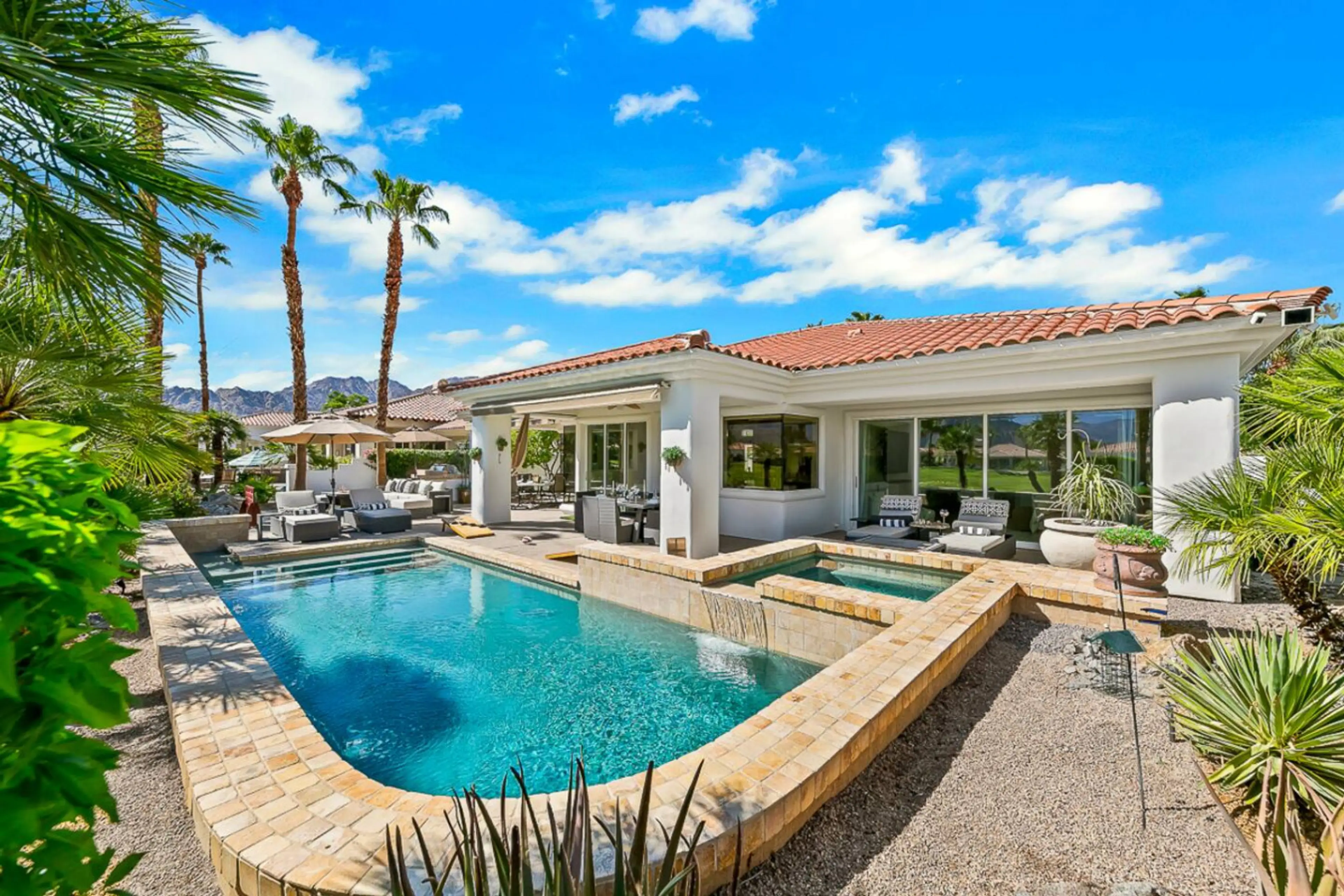 Experience front-row views of the 13th hole on the Jack Nicklaus Private Course at Casa Piedra, located within the prestigious gated community of PGA West. This 3,500 sq ft desert retreat offers spacious living, with every bedroom featuring its own en-suite bath, including a private detached casita....